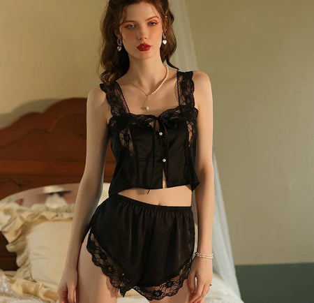 Lacey Silk Sleepwear - Black