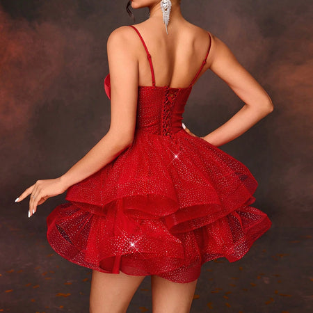 Luxuria Sequined Bustier Dress - Red | Sunny Bright