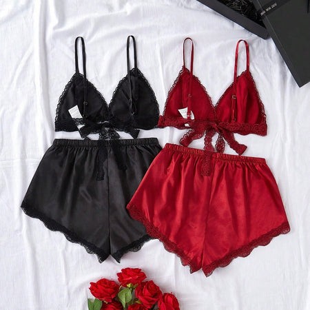 Minahasa Two Pack Pajamas Silk Set = Black & Burgundy