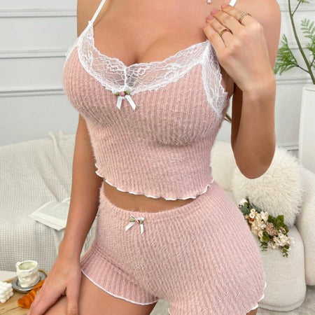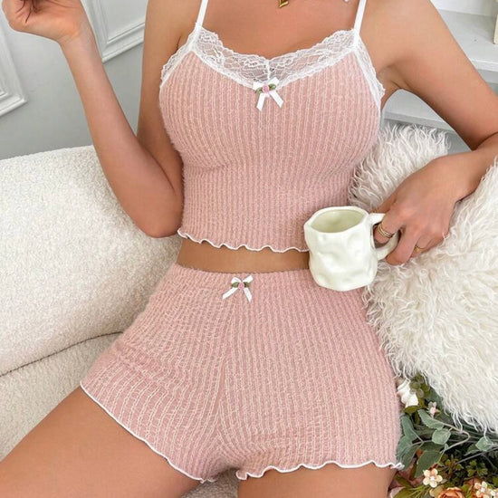 Prilly Soft Knitted Pajamas Set - Peach | Sunny Bright
