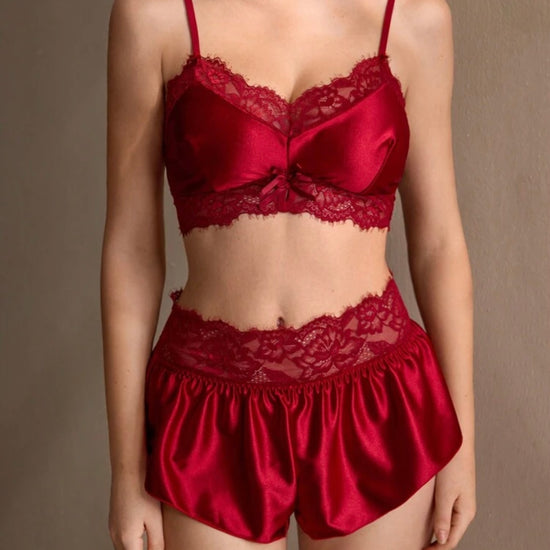 Sabrina Silk Lace Pajamas - Red | Sunny Bright