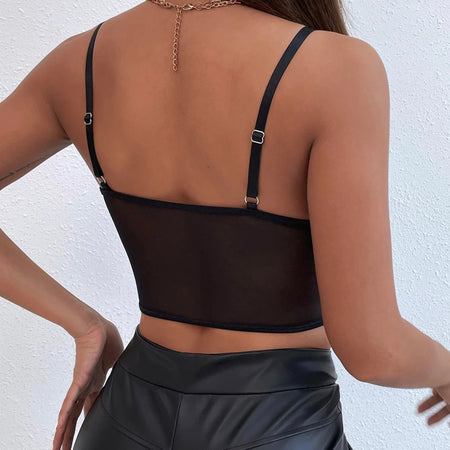 Rosalie Silk Embroidery Mesh Bustier - Black