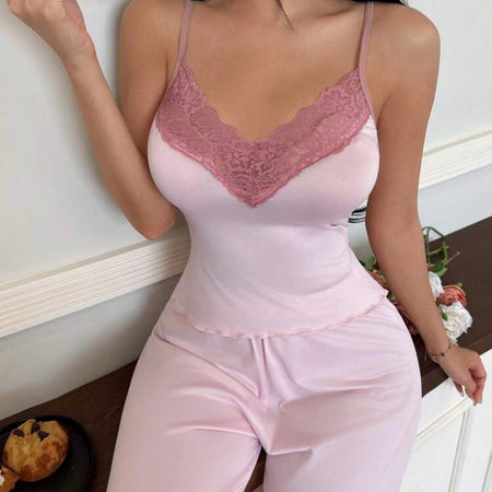 Zella Lace Two Piece Pajamas - Pink | Sunny Bright