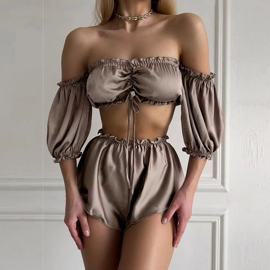 Zenitha Silk Pajamas Set - Brown | Sunny Bright